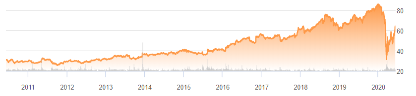 10년간의 그래프를 보시면 꾸준히 상승하다가